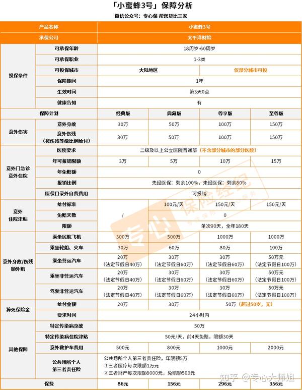 至于意外险应该买哪款,这里大师姐推荐小蜜蜂3号。