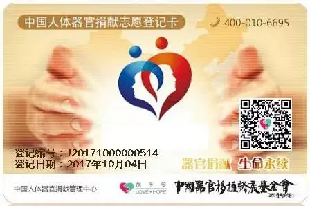 深蓝君在中国器官捐献志愿者登记网进行了登记,这是我的证件: