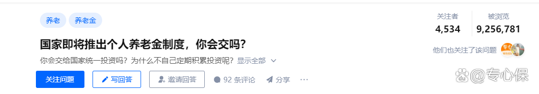 我是专心君!如果了解更多商业养老保险的问题,可以直接点击上方小程序,又或者关注@专心保,进入主页私信我,我会为你提供一对一免费咨询哦~