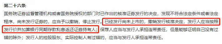 除了打新资金,还会加上银行同期存款利息一并退还,这一点是由《证券法》规定的。