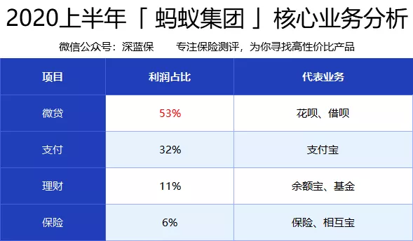 可以看到,平时常用到的花呗、借呗的微贷业务,撑起了利润的半壁江山,占比高达 53%。