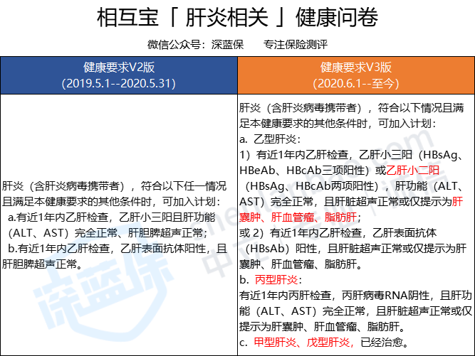 相互宝至今已经修改了两次健康要求,现在是自2020年6月才开始的 V3 版本。