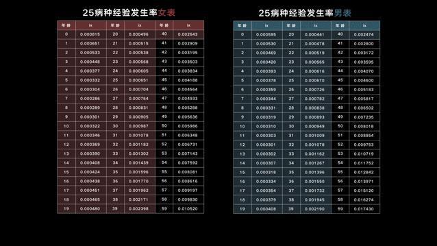 根据银保监会统计的25种重疾发生率,0 - 40 岁发生 25 种重大疾病的概率大概是3%。