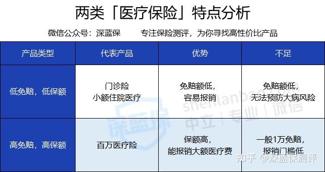 我简单整理了一下两种不同类型的医疗保险的特点: