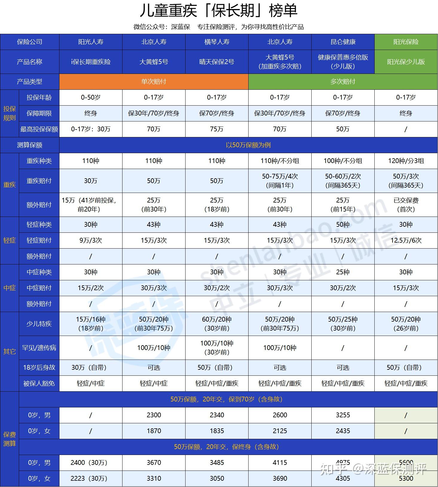 - 如果追求高性价比:可以考虑晴天保保2号、大黄蜂5号,保障非常全面,对20种少儿特疾和10种少儿罕见病都能额外赔,保障力度大,价格很便宜。