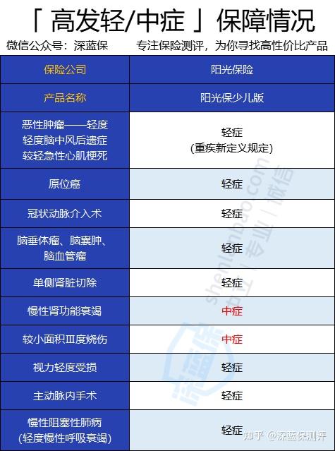 我们来看下阳光保少儿版对高发轻/中症的保障情况: