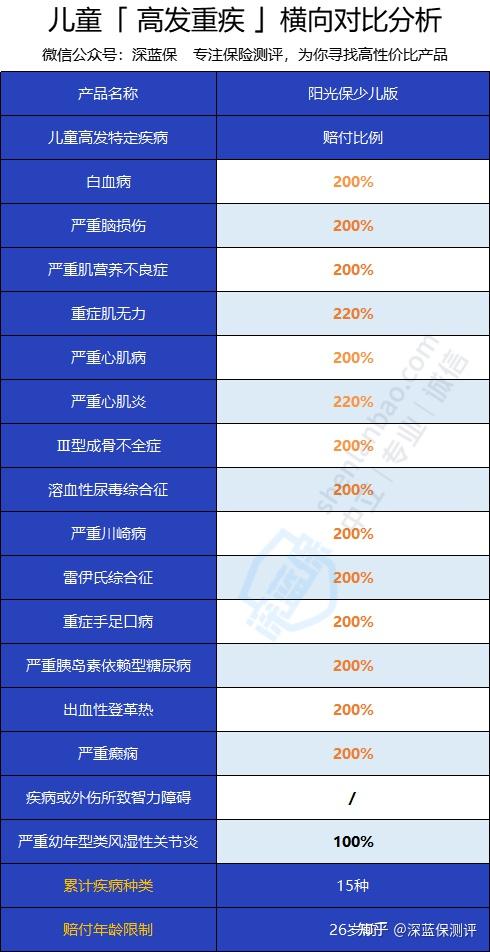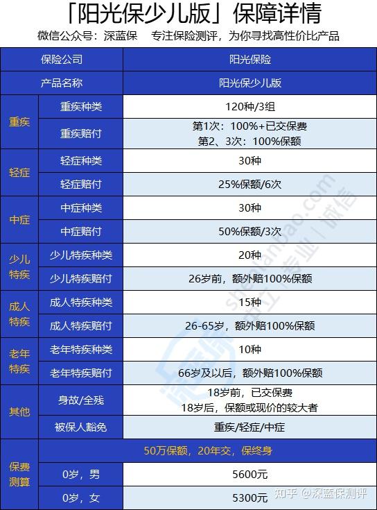 - 如果追求特疾保障:可以考虑阳光保少儿版,在少儿、成人、老年三个年龄阶段,首次患特定重疾,都能额外赔付一笔保险金。
