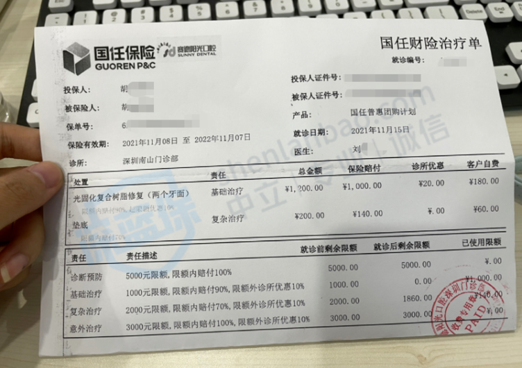 最近我就有同事买的牙齿保险出了险,588元买的牙齿保险,补牙保险赔付了1140,最后只需要自费240元,整体算下来相当于看牙直接打六折。