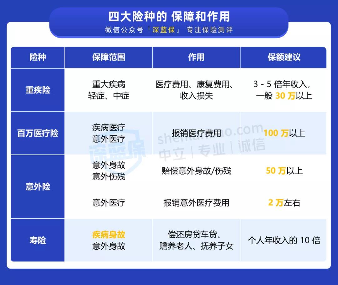 险干货科普:一文读懂四大保险(重疾险、医疗险、寿险、意外险)
