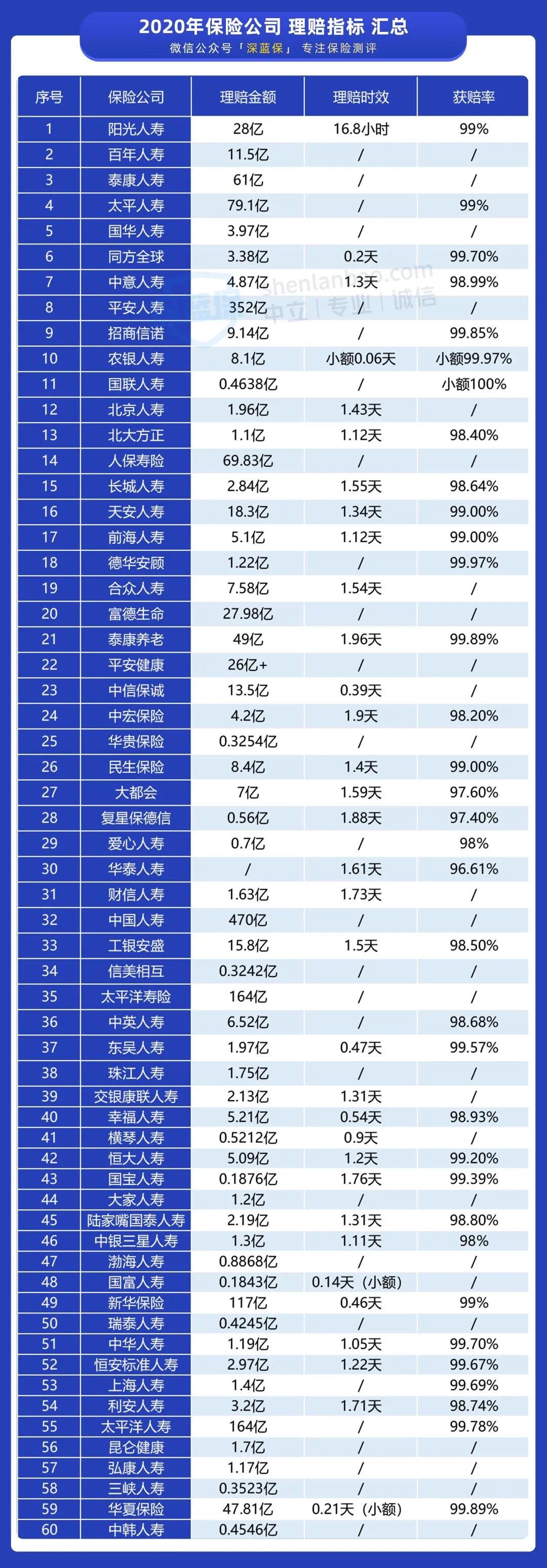 整理出来了目前各大保险公司公示的理赔数据,咱们直接用数据说话: