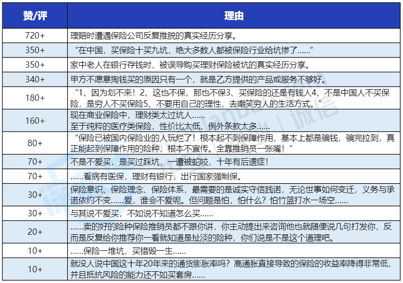 首先,我们来看看,大家有哪些拒绝保险的理由。