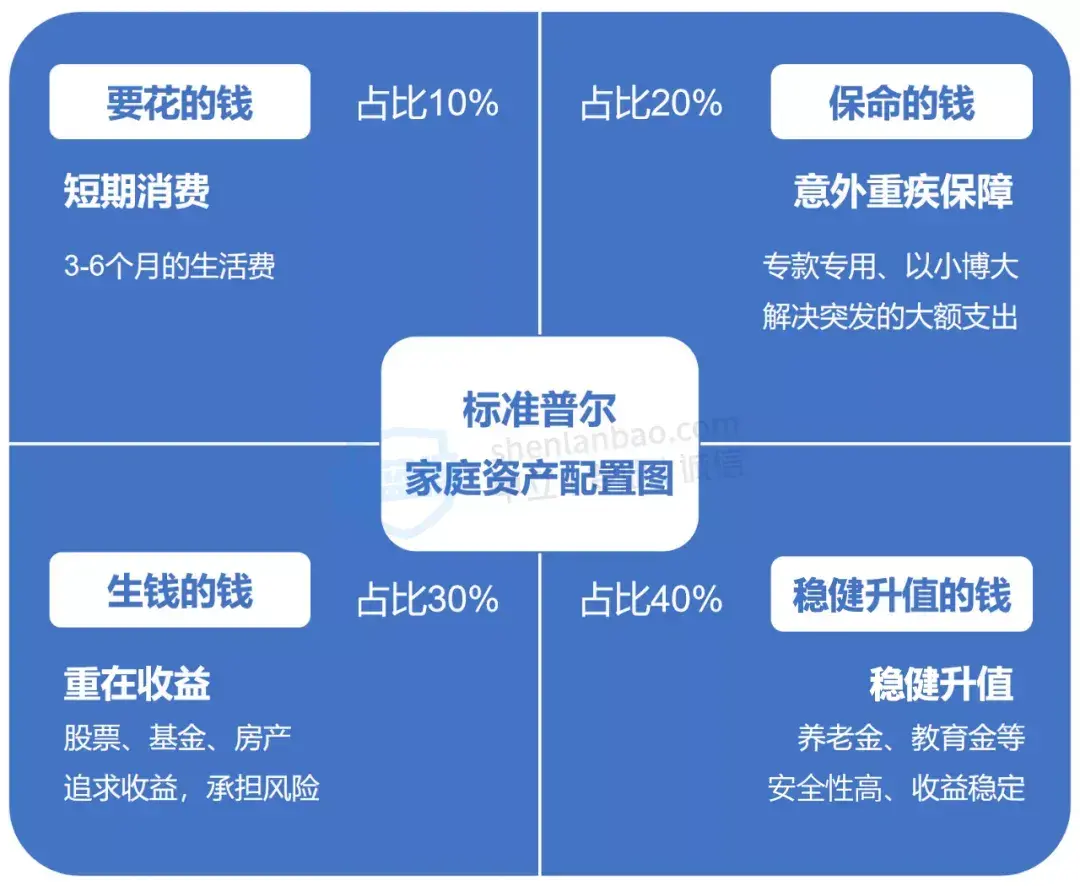 想要家庭财富稳定地增长,我们可以用“标准普尔家庭资产配置图”作为参考。