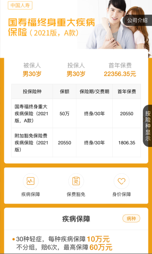 比如下面这款50万保额的重疾险产品,30岁男性投保每年需交2万多,像大师兄这样的普通人实在是买不起。