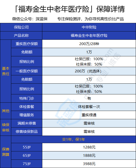 近日,中华财险新出了一款针对老年人群体的百万医疗险——福寿金生中老年医疗险。