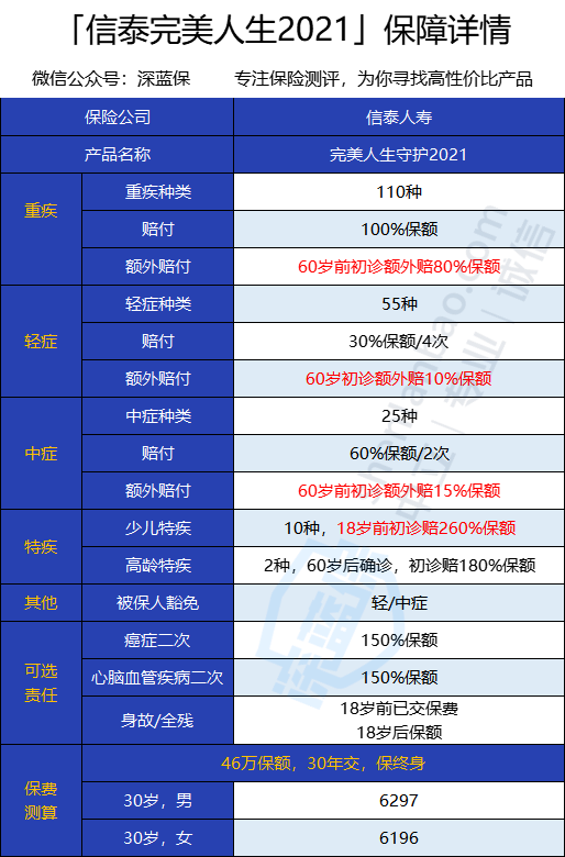 完美人生守护2021是信泰人寿推出的一款高性价比产品,0-55岁都能买,可选保至70岁或终身,最长可选30年缴费。