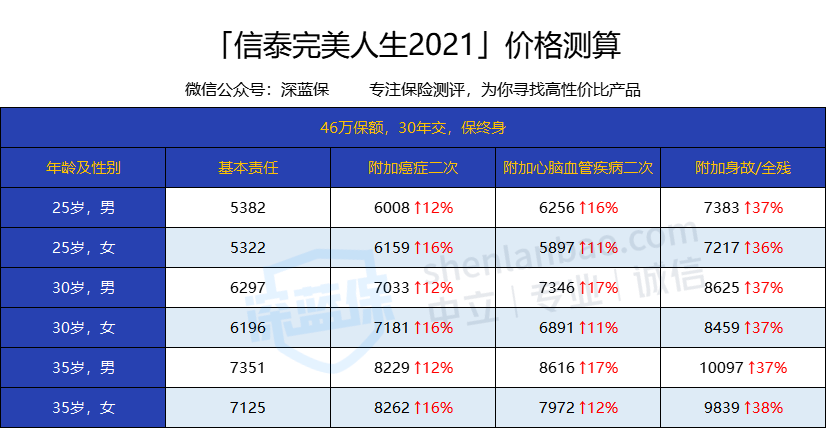 至于身故/全残责任,附加后,与重疾责任只能二赔一,通常不建议大家附加。追求身故/全残保障的朋友,不妨考虑配置一份定期寿险,价格不贵,且不受重疾理赔影响。