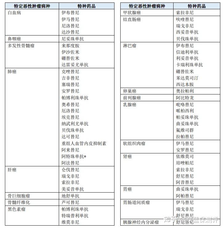 2、特种药品费用:确诊特定癌症后,治疗如需用到以下规定药品的,报销公司可以报销这笔费用,最多可报销100万,具体报销规则如下: