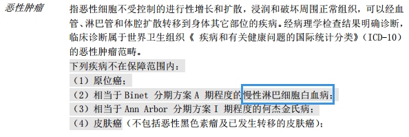 目前我们市场上销售的重疾险,都是包含上述的免责条款的,就算每年缴费5000元的终身重疾也一样。慢性淋巴细胞白血病是一种进展缓慢、惰性的肿瘤,患者通常保持无症状达数月至数年,我们通常说的白血病一般指的是急性的,所以大家也不用过分担心。