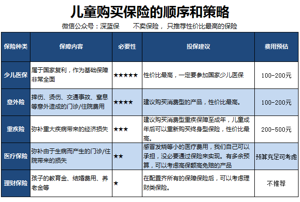 通过上面的顺序和排序,相信大家应该对为宝宝购买保险有了一个基本的认识。其他深蓝君不敢说,如果你认真仔细的读完了这篇文章,在给宝宝买保险的这件事,已经很难被坑爹的产品骗到,也不会作出非理性的购买决策,避免花了冤枉钱,保障还没有做好。