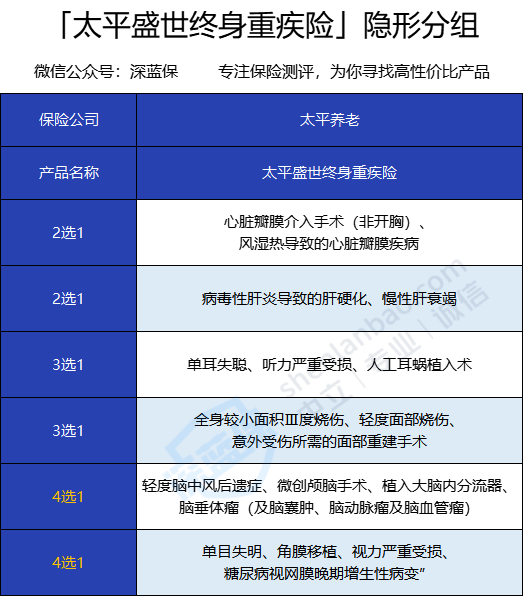 太平盛世终身重疾险的隐形分组如下: