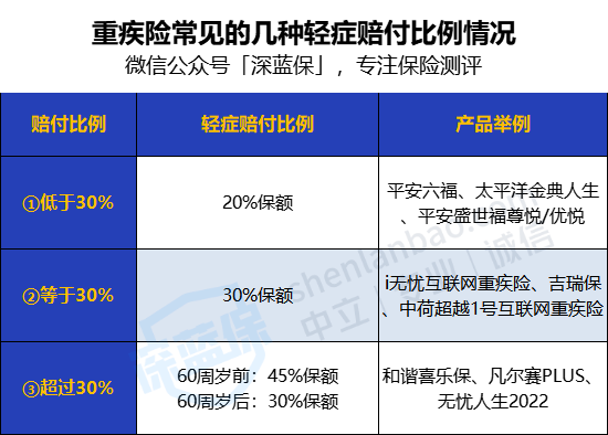 第三种,轻症赔付超30%比例: