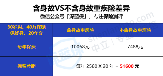 按50万保额计算,相差了20万元!