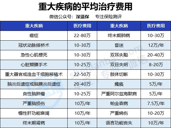 先来看一波数据,感受一下一些重大疾病的平均治疗费用: