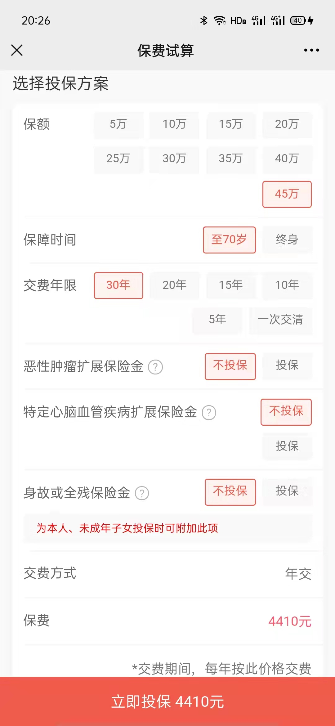 每选一项,保费也在真金白银的发生变化。