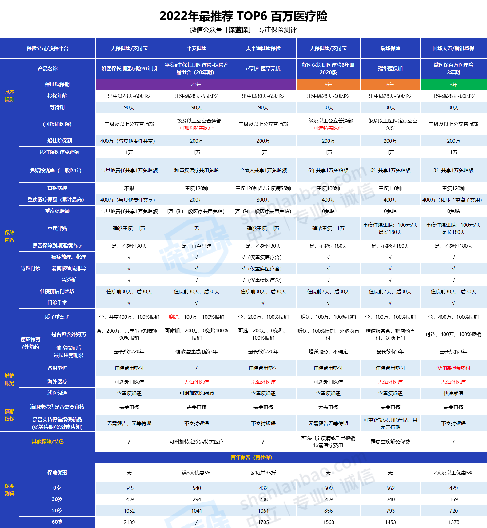 目前为止,保证续保期限最长的是 20 年,所以别轻信代理人所谓的保终身;保终身的是防癌医疗,只保癌症,差别不是一丁半点。