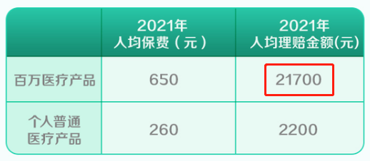 2021年,人均保费是650元,人均理赔金额是21700元。