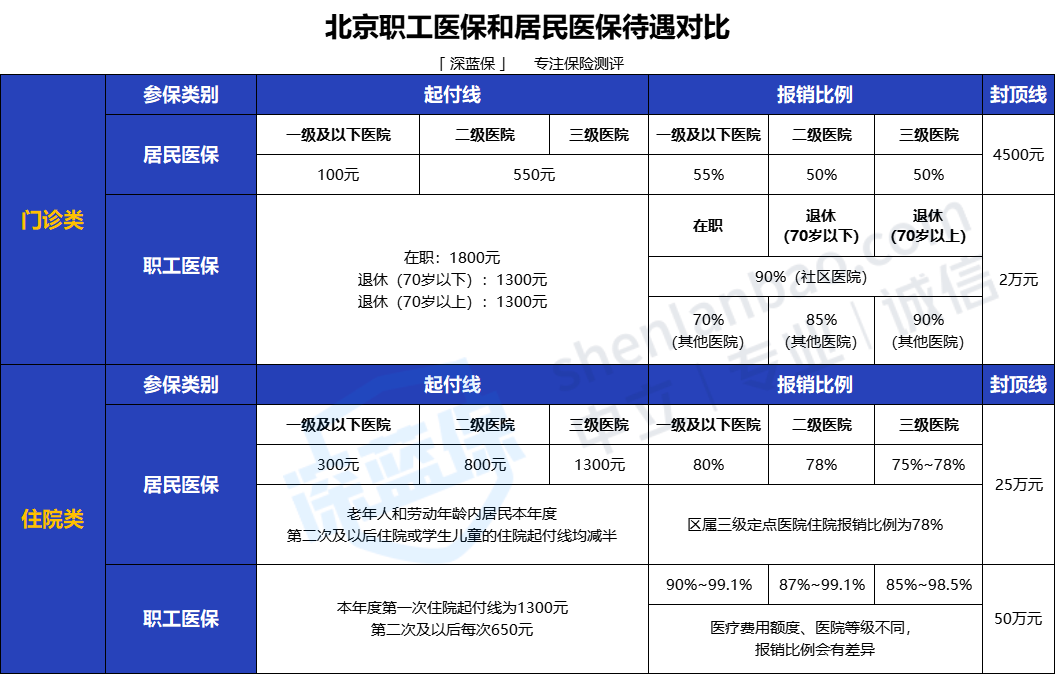 大师兄以北京为例,看看北京职工医保和居民医保的报销待遇区别: