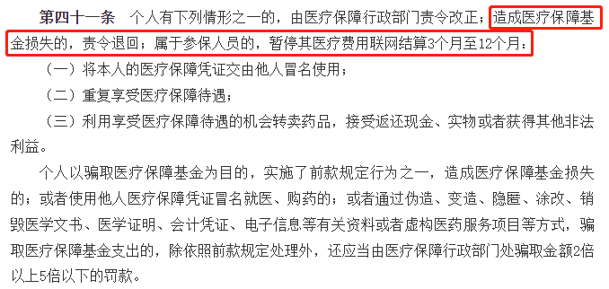 换句话说,一旦把自己的医保卡给别人冒名使用、重复报销甚至“套现”,持卡人和使用者不但要退回相关费用,在3-12个月的时间里都无法照常使用医保卡,得不偿失。