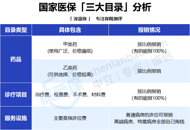 我们常说的「医保报销」,其实报销的是药品、诊疗项目和服务设施这三大目录内的费用;