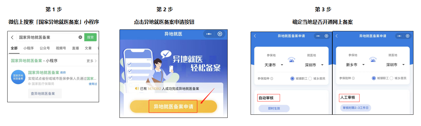 最方便的方法,是在微信搜索「国家异地就医备案」小程序,点击“异地就医备案申请”按钮,然后根据指引往下操作就好。