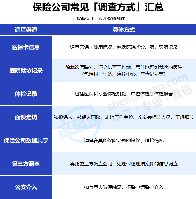 大师兄顺便整理了一些保险公司常见的理赔调查手段,大家可以看一下: