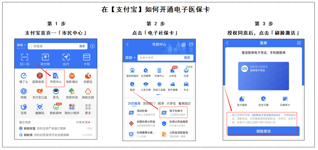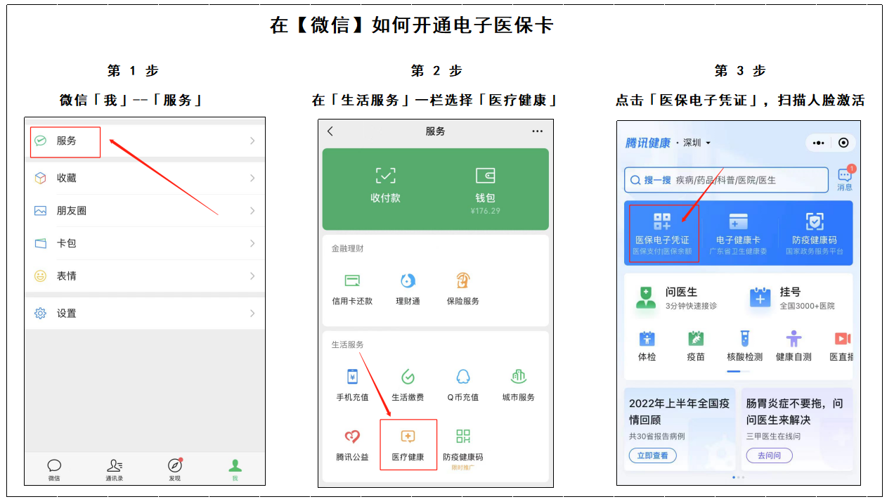 以大师兄所在的深圳为例,我们可以直接在「深圳社保」公众号上传身份证、社保照片回执号等信息,然后等10-12个工作日,拿到医保卡后,我们就可以在开卡银行激活卡片。
