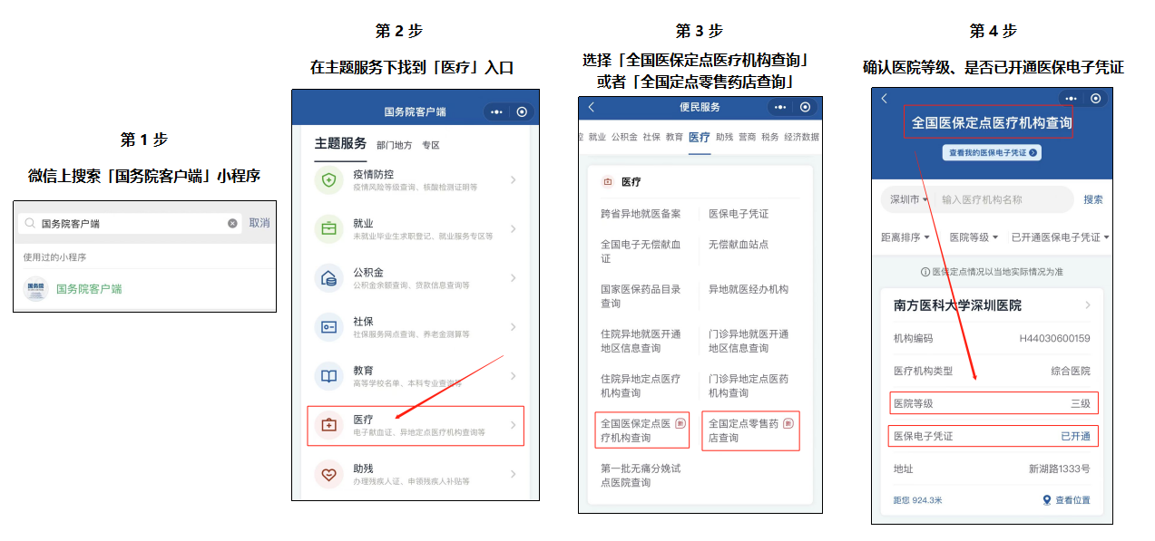 ● 确定就医医院:只有纳入异地直接结算网络的医院,异地就医时才能刷医保卡结算。大家可以在“国家医保服务平台”(点击:国家医疗保障局)进行查询。